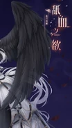 She stretches her hand towards the Blood Moon, and the wings of demons and angels open at the same time. Dark pupils hide under her silver hair.