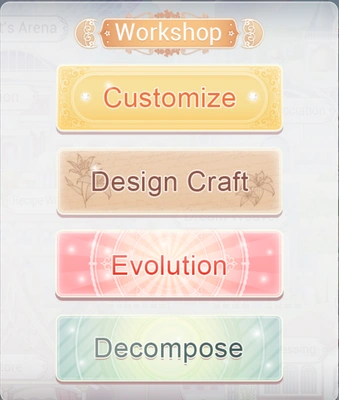The Recipe Workshop is a part of the game in which you can customize, craft, evolve, decompose, or reconstruct clothing.