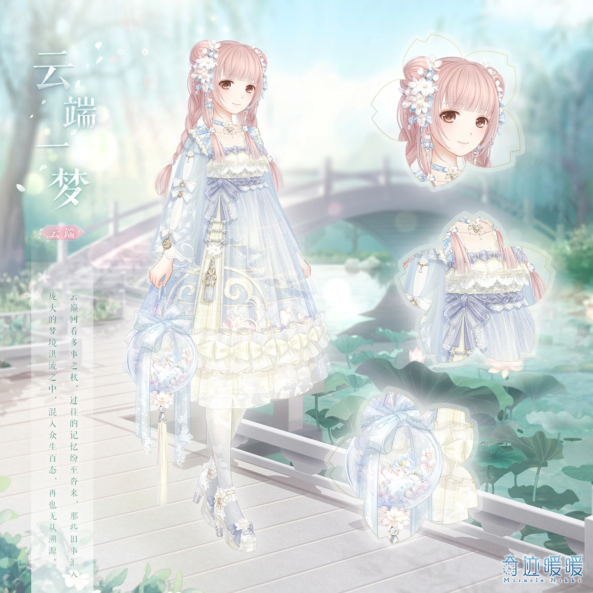 Cloud Dream is a Cloud suit that could be obtained from the Cloud Realm event. It is the first Live2D interactive set, which has a special animation when all pieces are worn.[1]
