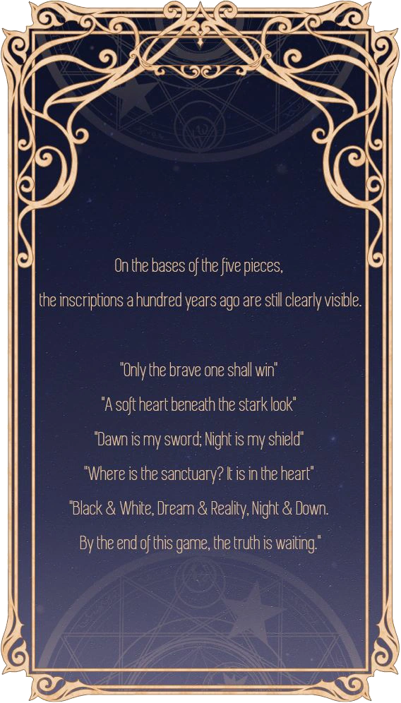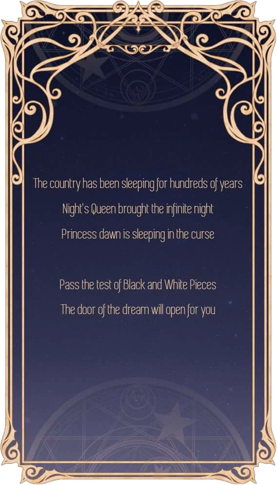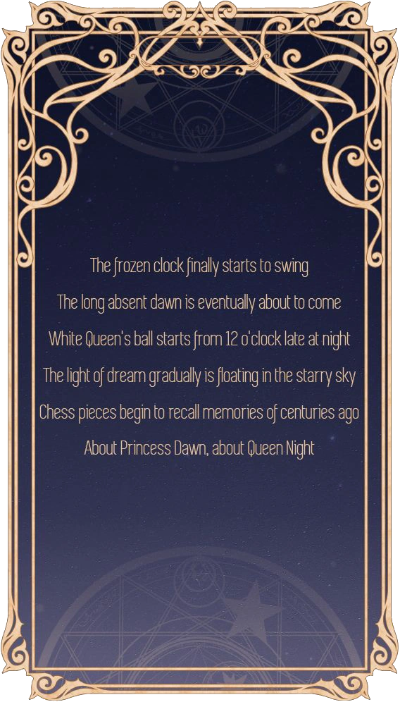 From pieces' memories, we knew Princess Dawn and Queen Night. Nikki and I will step into the castle to seek traces of the princess. When Nikki and I stepped into the castle and wanted to wake up the princess, we found the secret of the Dawn & Night - they was one!