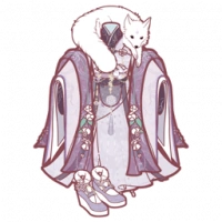 She revealed her tails when she arrived at the old mansion, satisfied with her ability to morph her master's appearance. She and her old master used to visit the lantern festival together, but by now, her master was long gone. The master left in front of a wisteria tree which had witnessed lots of turbulence. The fox had ran towards the tree, and instead of crying tears, it had wept a flower for them.