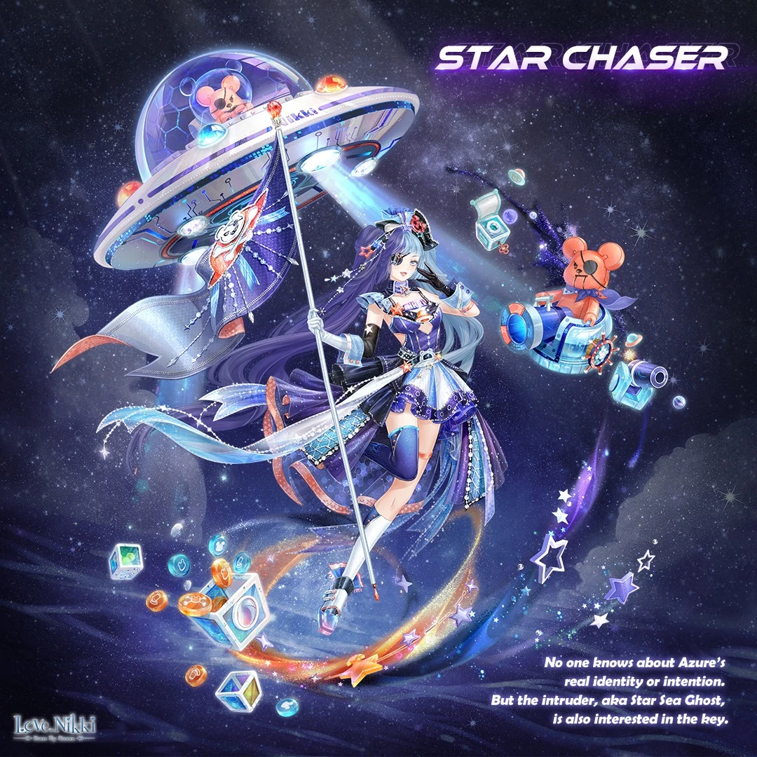 The suit talks about Azure, who is a researcher on Ruin Island. In the virtual game Star Sea, Azure changed her appearance and set off a rumor of a key hidden on a planet that access the source code. Multiple players set off to find the key, leading to high tensions and battles. Azure enters the fray under the identity Star Sea Ghost and dominates the battle. When Azure finds the key and accesses the core, she finds a grand firework show that lights up the universe.