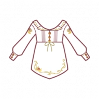 The mori style high waist blouse has long sleeves. The embroideries of leaves and chestnuts are very delicate.