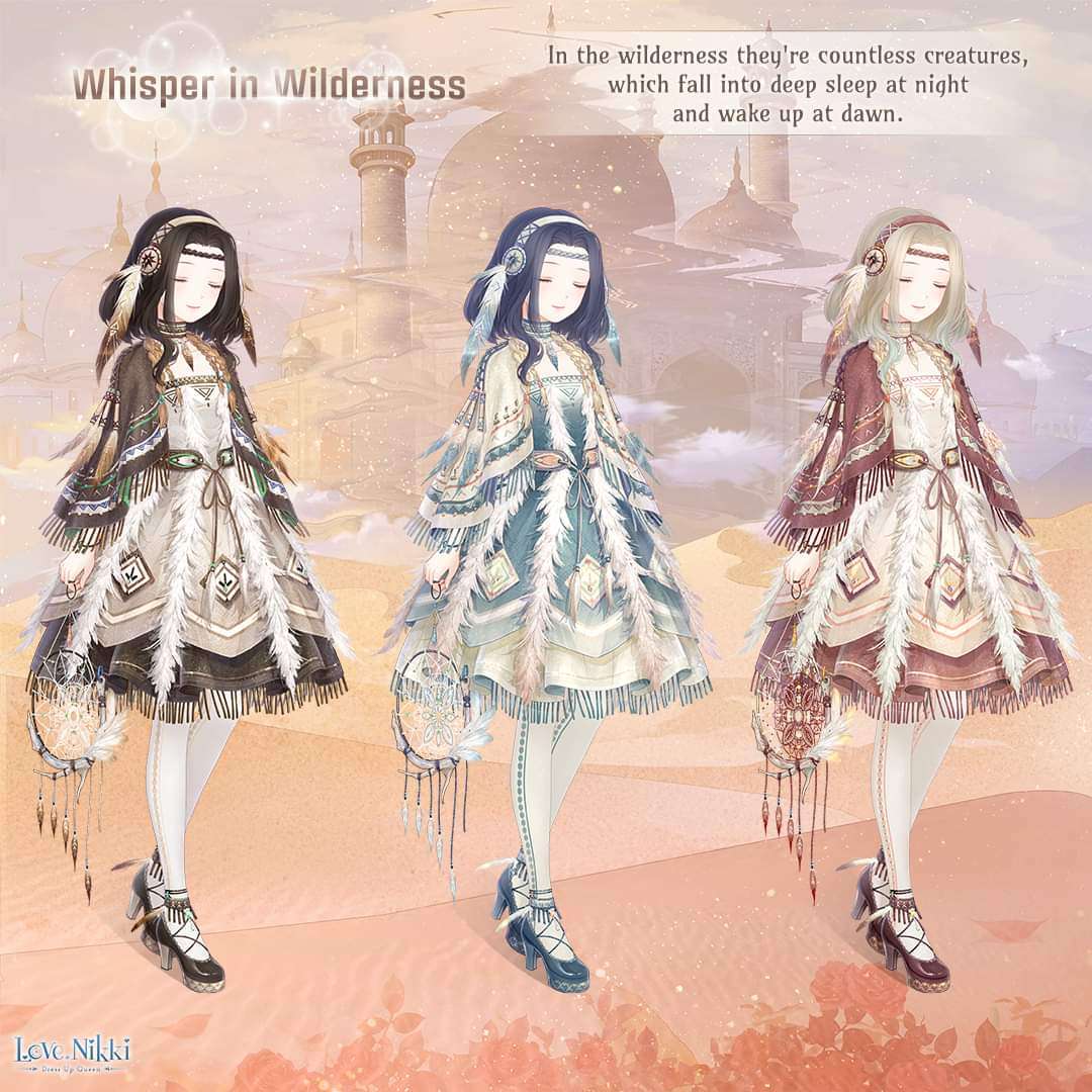Whisper in Wilderness is a Wasteland suit that can be obtained through Crafting. The hair, dress and hairpin are needed to pass V2: 11-6 Restaurant Trial.